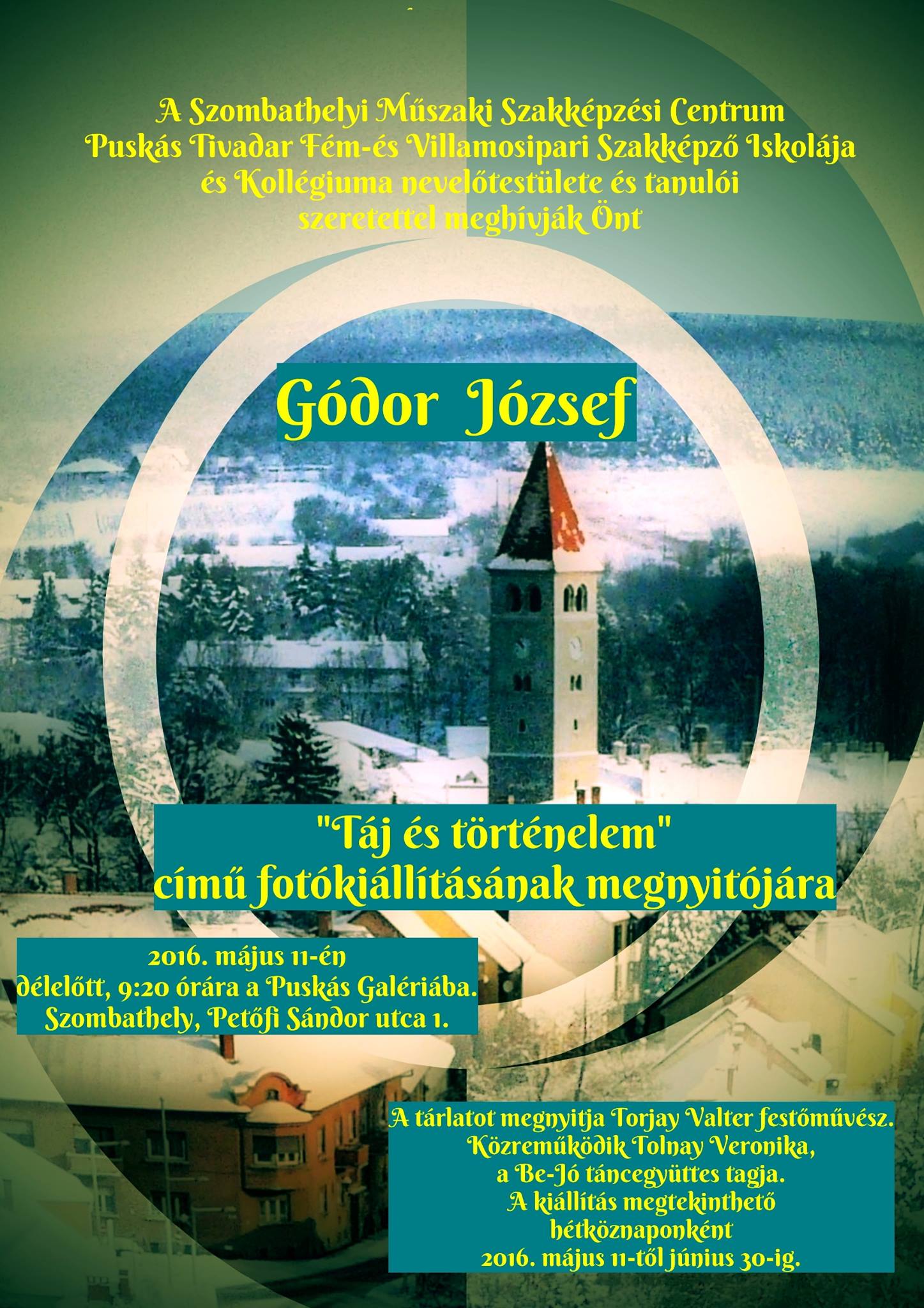 A 2015-2016-os tanév záró kiállításán Gódor József, kőszegi alkotó mutatkozott be. A fotózás, és annak technikája iránti kíváncsisága fiatalon jelentkezett. Először csak családi és baráti fotókat készített. Az igazi kiteljesedés a nyugdíjba vonulás után kezdődött, már digitális technikával. Ekkor kezdődtek utazásai Európa országaiba és a Közel-Keletre. Megjelennek a fotókon a hazai tájak és Kőszegről készült képek is. A kiállított képek témája: a táj, a természet és az épített történelmi emlékek. Aktív tagja a Kőszegi Csók István Művész Egyesületnek is. A kiállítás megnyitón közreműködött a tehetséges Tolnay Veronika, a Be-Jó táncegyüttes tagja, aki Cserháti Zsuzsa Elfelejtett dal című számával készült. Torjay Valter festőművész-tanár megnyitójában felvillantotta az alkotó életpályáját és azokat a hatásokat, amelyek kimutathatók a képi világában és ezeket a szinte képeslap minőségű fotókat ihlették.