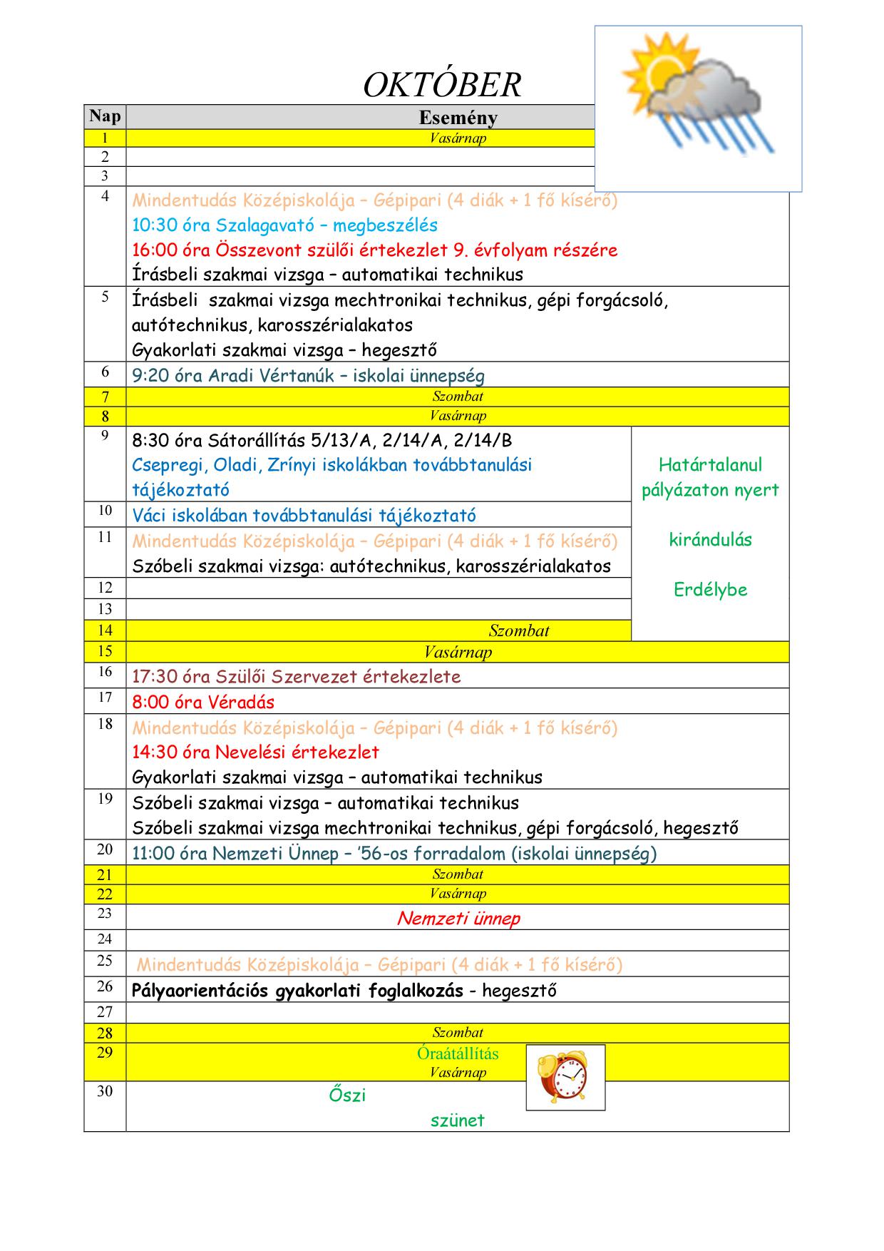 Rendezvények időpontja: